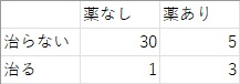 分母は、「薬なし」、「薬あり」のそれぞれの合計値です。