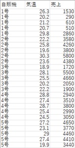 自販機で色分けすると、それらの自販機については、気温と売上に相関があるように見えます。
